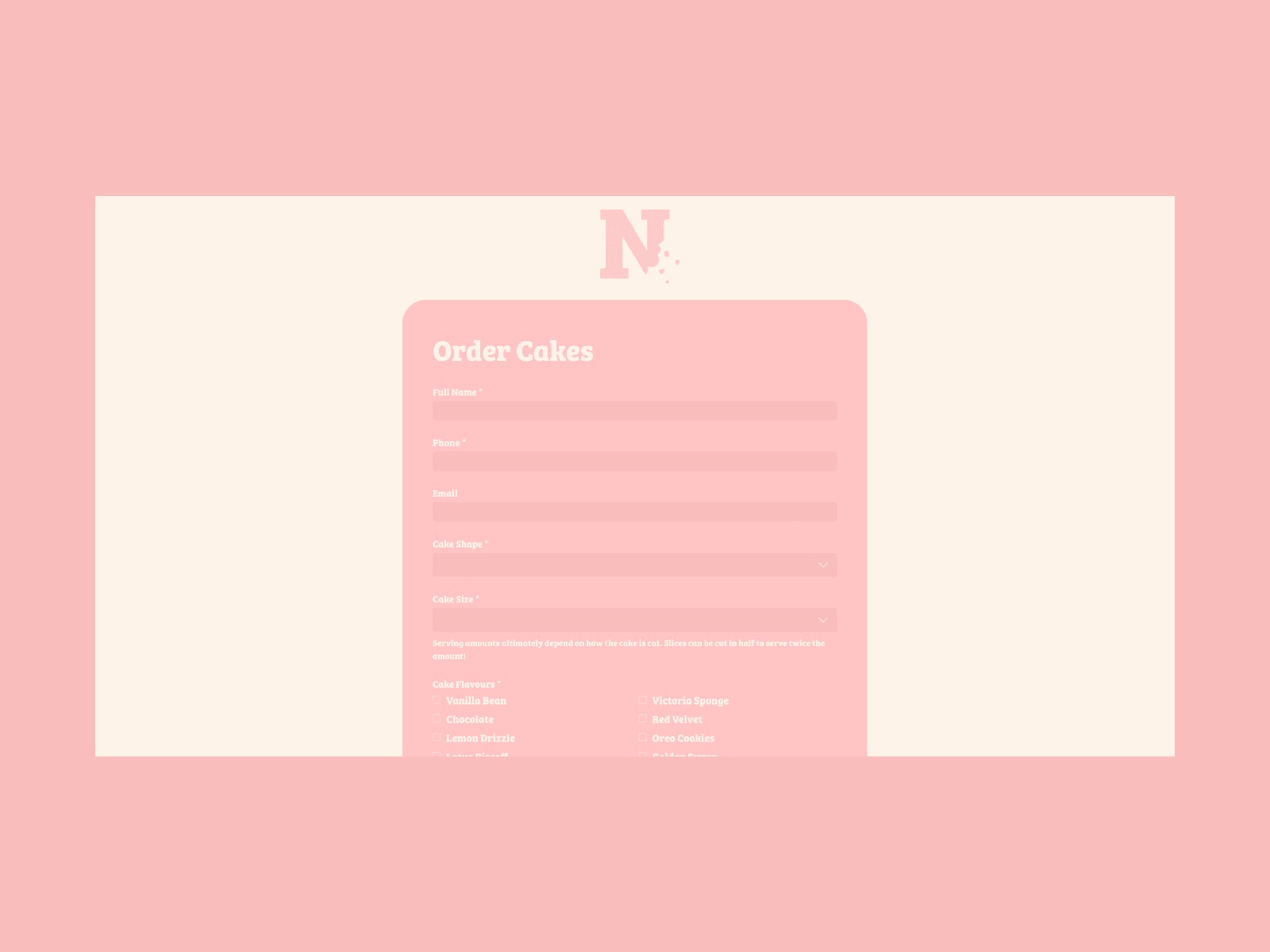 We developed a clear, easy to use order form to help structure customer enquiries and keep the client’s workflow organised. The footer carries the full Nneka primary logo paired with a newsletter sign-up to support customer engagement and repeat visits. Overall, the website creates a smoother ordering process while staying closely aligned with the Eat Nneka identity.